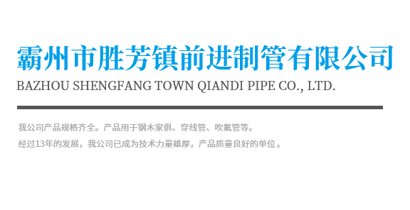 Bazhou Shengfang Town Qiandi Pipe Co., Ltd. 霸州市勝芳鎮(zhèn)前進制管有限公司位于河北霸州市勝芳鎮(zhèn)開發(fā)區(qū),地處京、津、保三大城市中心地帶。北距北京120公里,東距天津45公里,西有京九鐵路,北有津保高速公路貫通。